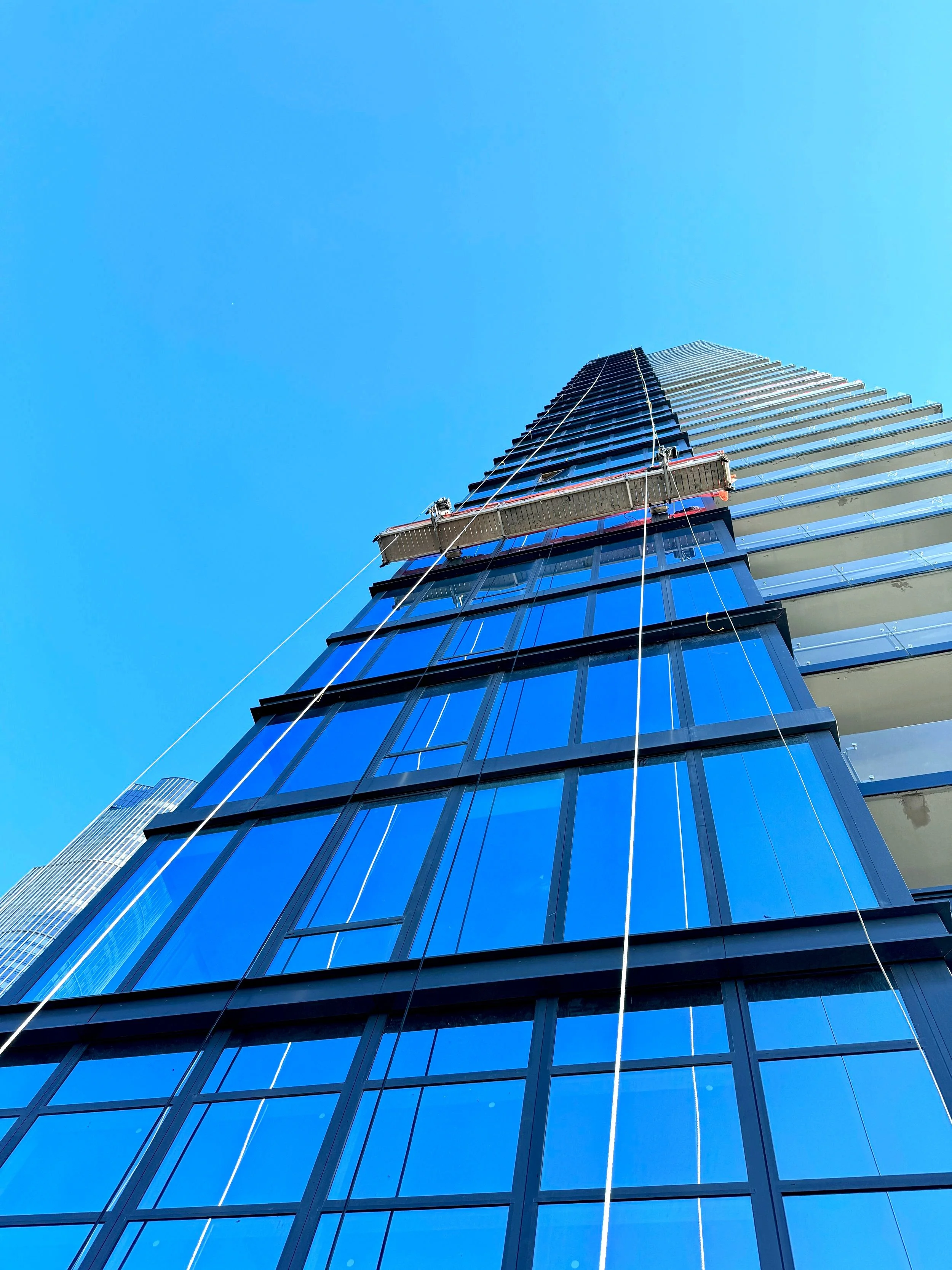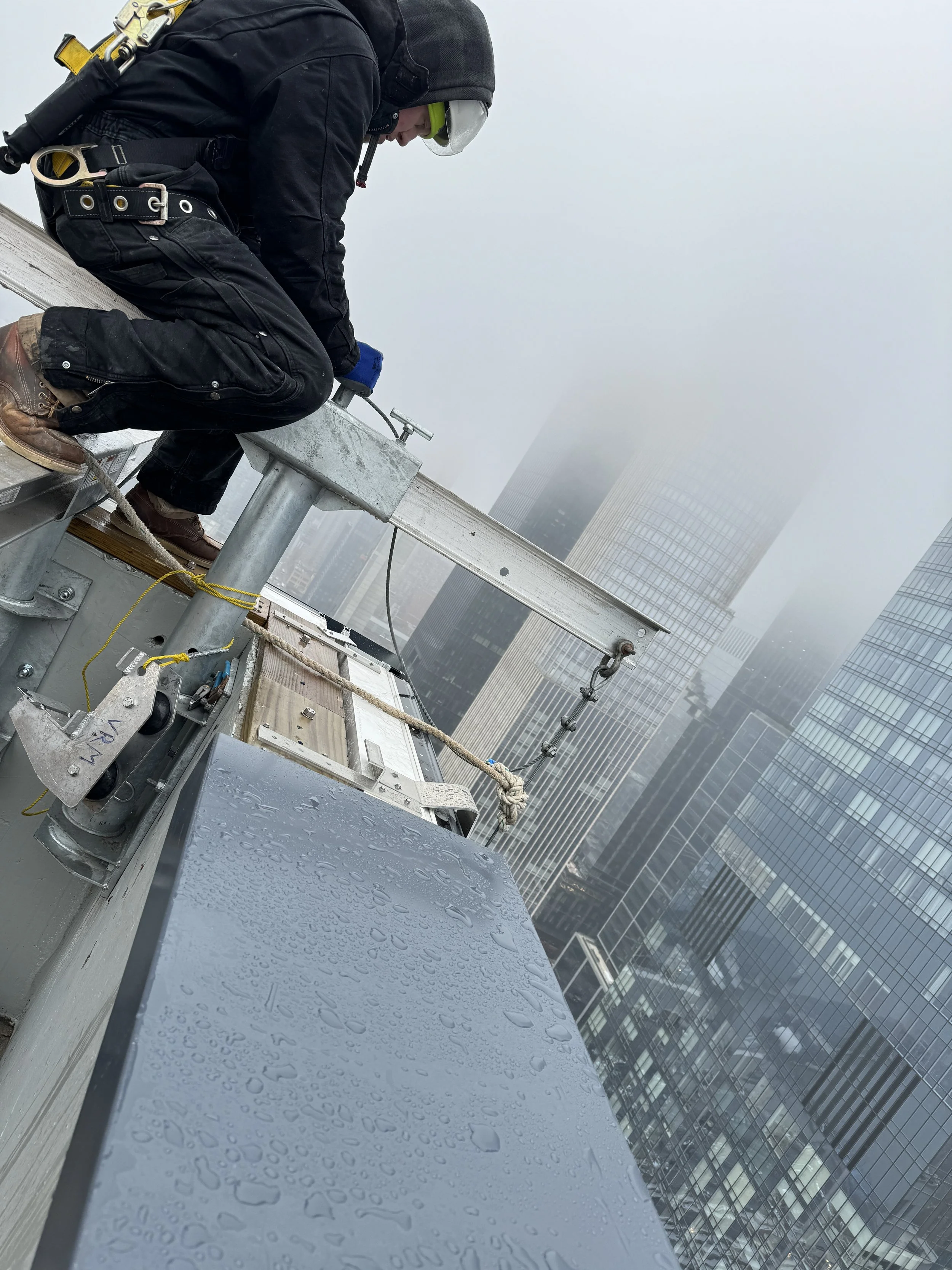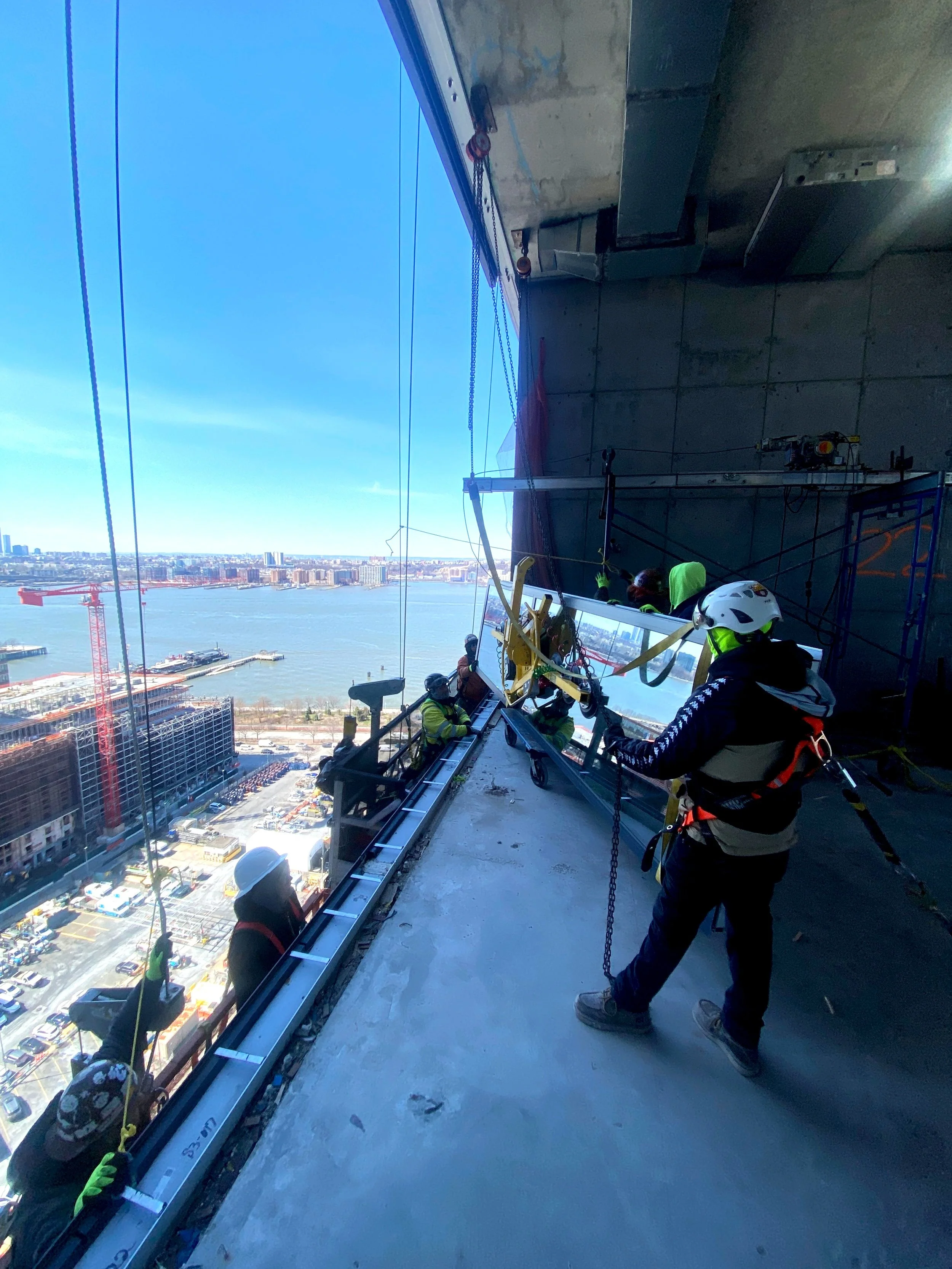 VRM performed exterior waterproofing, window and metal panel installation, provided complex rigging solutions installing 18’ tall windows from the exterior w/ suspended scaffold, monorails and manipulator hoists.